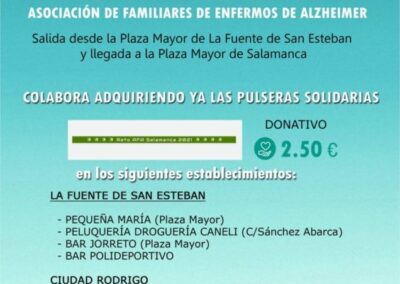 - Comprando una de las pulseras que los mismos corredores han elaborado y que puedes conseguir tanto en La Residencia Boni Mediero C/ La Maragatería 31, en el Centro de Día C/ Músico Antonio Baciero 6, como en distintos establecimientos de La Fuente de San Esteban y Ciudad Rodrigo. Su precio es de 2,50 €.
