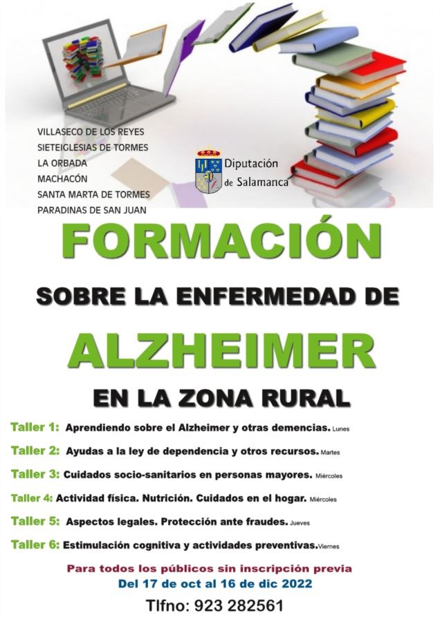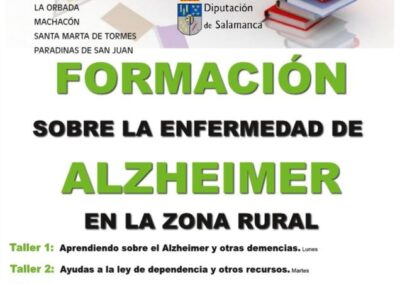 Realización de talleres formativos sobre cuidado y autocuidado de personas afectadas por la enfermedad y personas cuidadoras en 6 municipios de la provincia de Salamanca para el año 2022, estos talleres se realizan bajo un Convenio de colaboración con la EXCMA. Diputación de Salamanca.